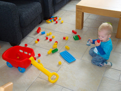 Today we played with his new toys, we made a walk through the town, this afternoon two colleagues come and visite for his birthday, He got a train with al buttons, which came music from, he loved it, tonight we whent bicycles.