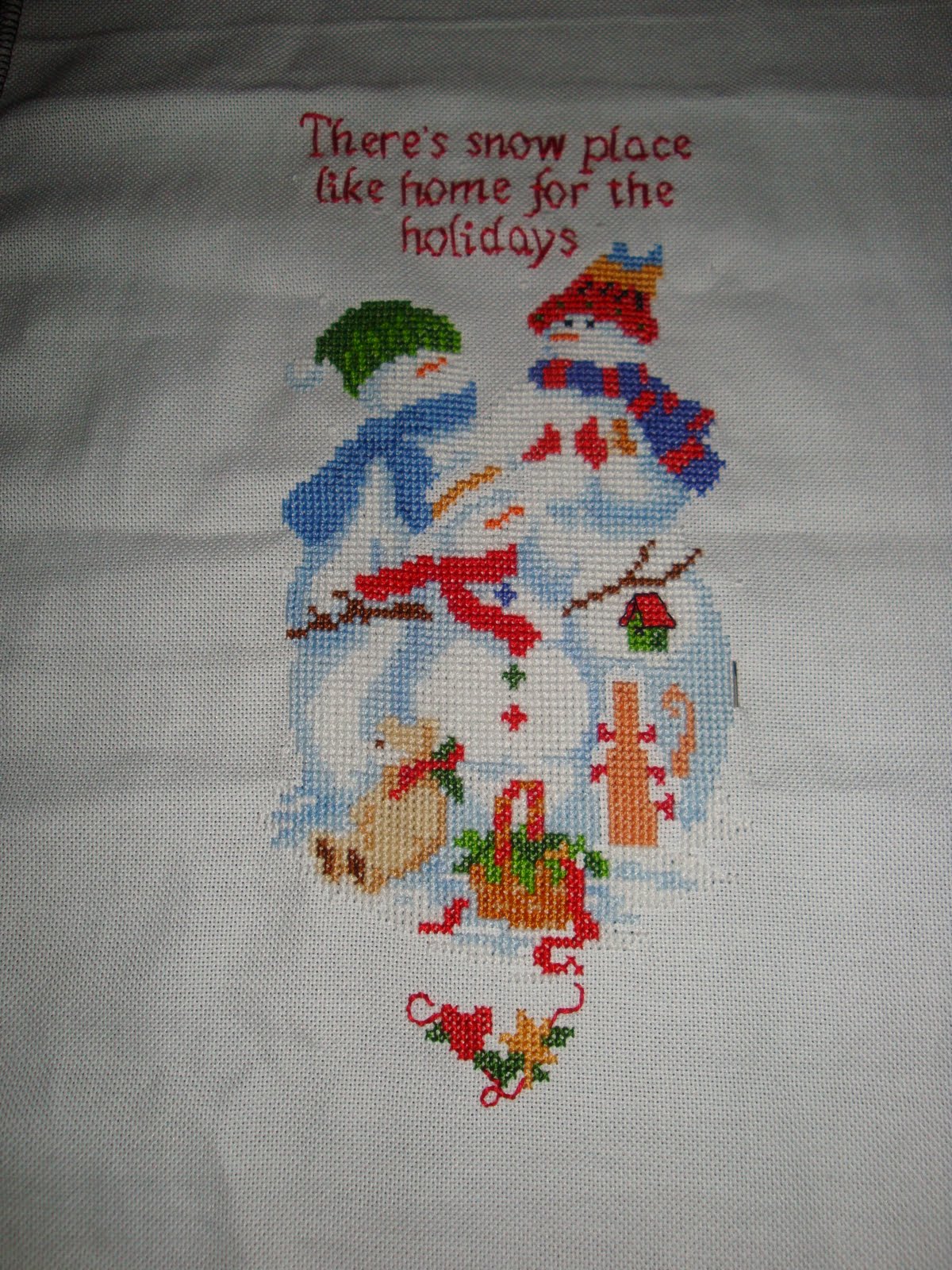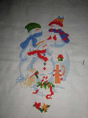 Yes the white. I have done al the white in my snowmen banner. It was al lots of white, and this evening I was very glad that it was finished. White snow, white snowmen and white snowflakes, white white white.....