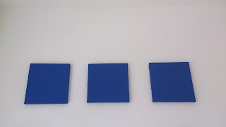 So I took some dark blue fabric (also found cleaning my attic) and attached them with a stapler