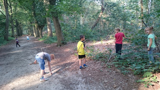 For his kids party we went with his friends to the wood. made wapens from wood and elastic, and 'tryed'to catch our diner.. his had so much fun.
