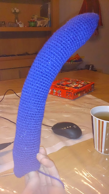 I also crocheting a Light saber (papa smurf thing right Valerie and Nia LMEO ;-)) But with my phone I only can attach 2 pictures in a post so When I finished it totally next week you Will see it. :-)